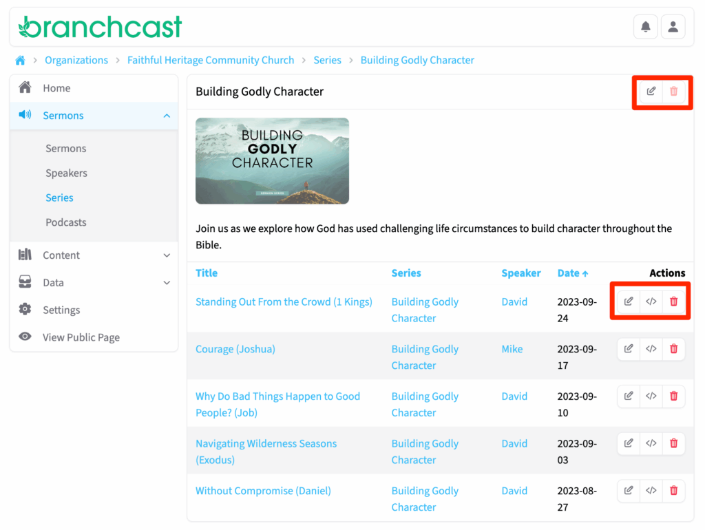 - View all existing sermon series.