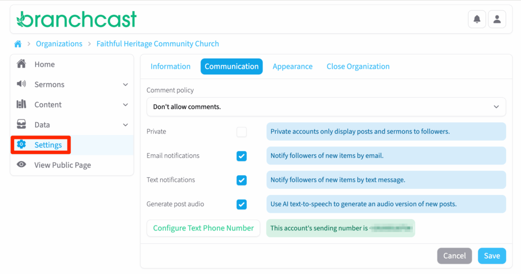 • Comment Policy – Set the rules for comments on sermons and posts.
